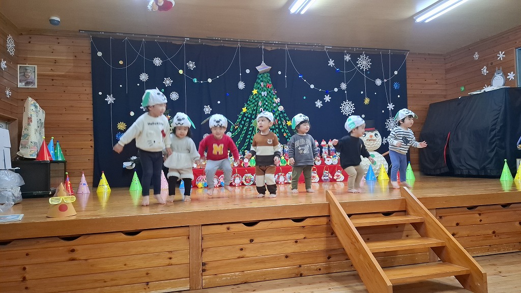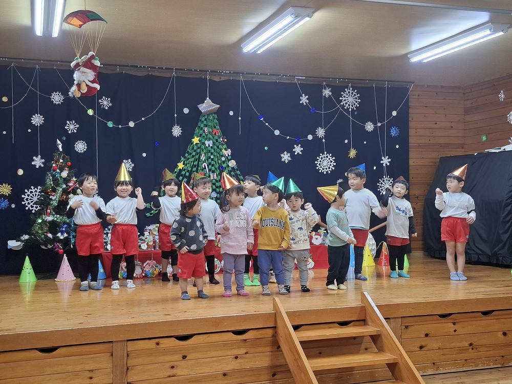 メリークリスマス!みんなが楽しみにしていたクリスマス。各クラスで遊戯や歌の披露をしました。そしていよいよ