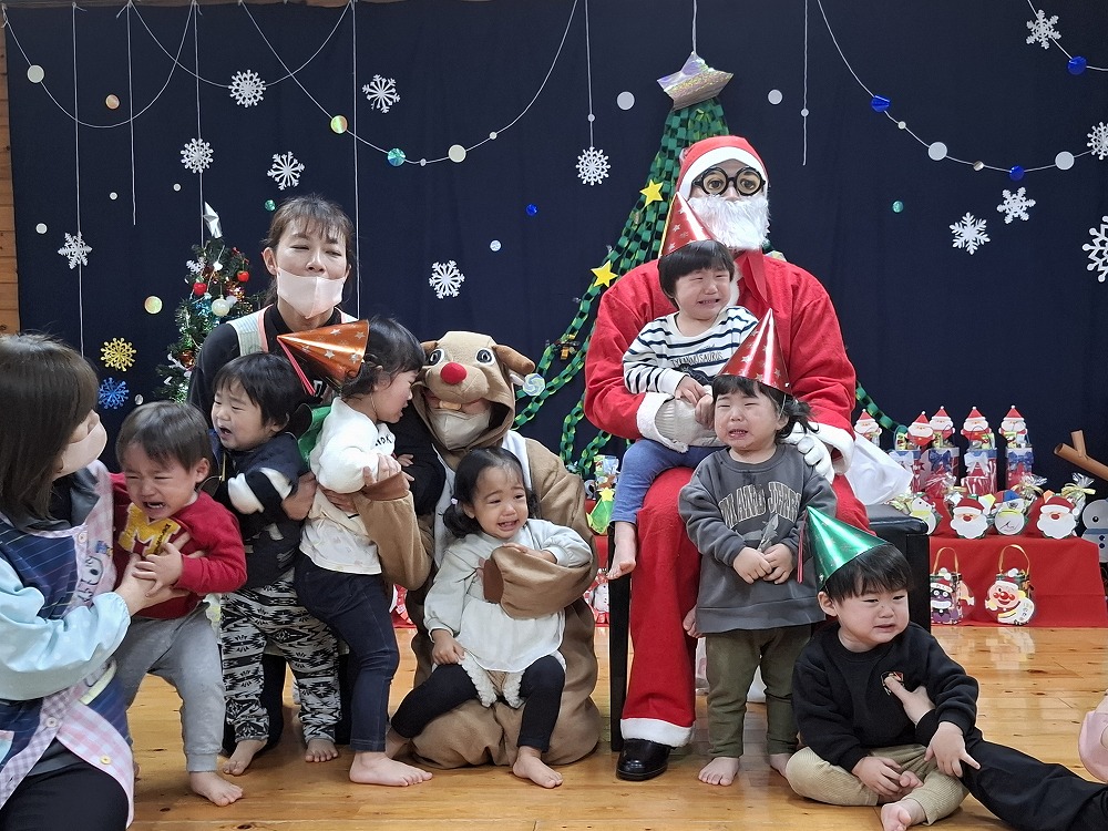 サンタの登場\(^o^)/部屋に入ってきた瞬間、未満児さんは大泣き(>_<)写真撮りは大変でした💦